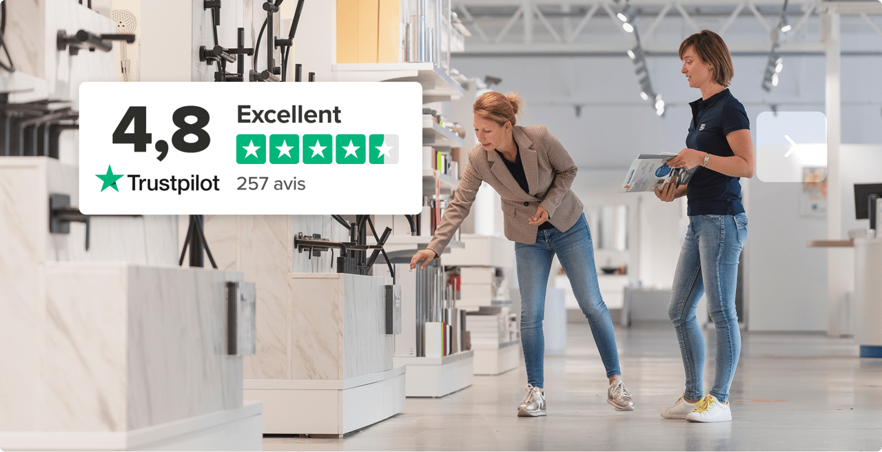 Nous avons la salle de bains adaptée à tous les budgets et tous les goûts et nos conseillers de salle de bains sont là pour vous aider ! Dans nos show-rooms, mais aussi en ligne, pendant que vous parcourez notre boutique en ligne.