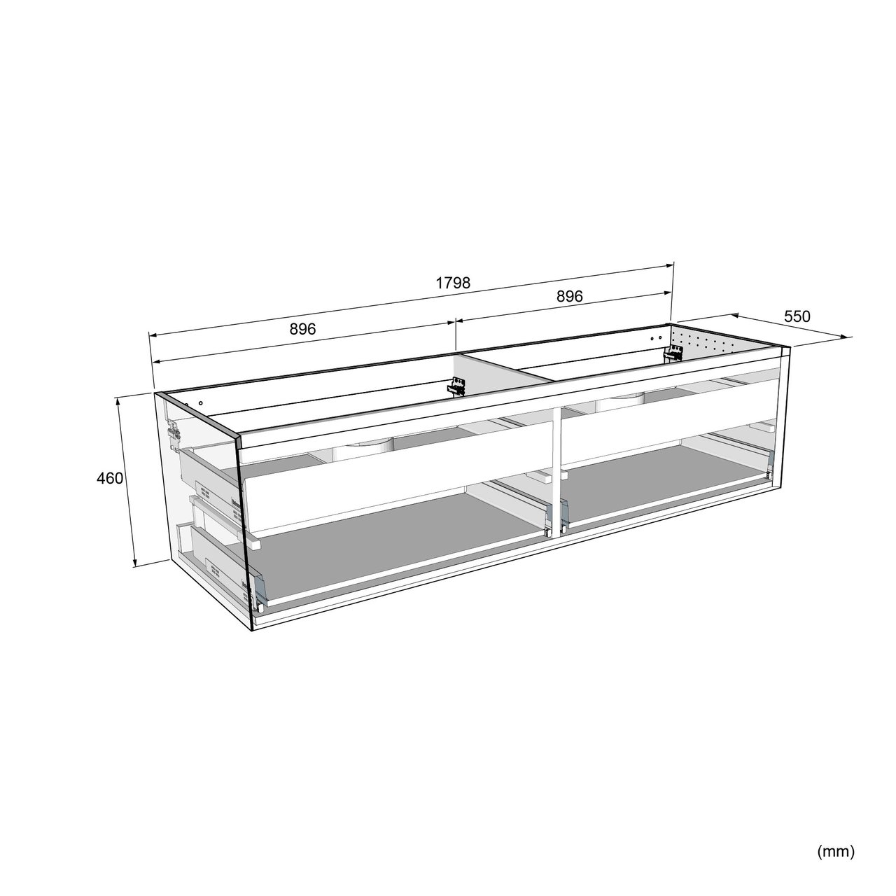 Ce meuble sous-vasque en MDF laqué de qualité supérieure avec deux tiroirs frontaux et deux tiroirs encastrés spacieux a une largeur de 180 cm, une hauteur de 46 cm et une profondeur de 55 cm. Ce meuble flottant en gris pierre convient à toutes les salles de bains grâce à sa finition élégante.