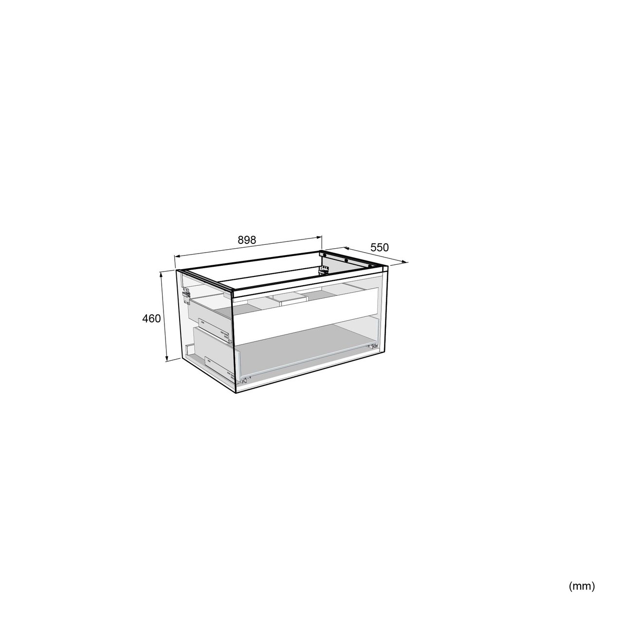- Tiroirs intérieurs en bois massif avec guides de tiroirs Blum et parois droites qui peuvent être retirées d'un simple clic. Cela assure une installation facile et parfaite et une optimisation maximale de l'espace.