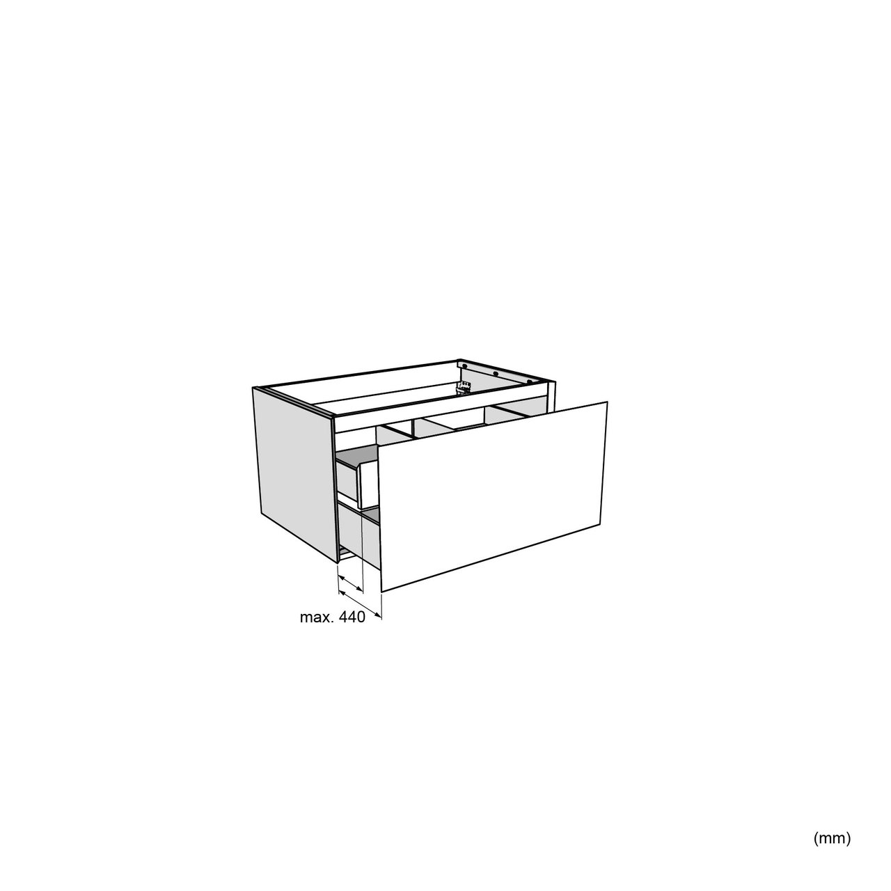 - Modèle sans poignée où la poignée oblique est subtilement intégrée dans la façade du tiroir. Cela procure un aspect épuré.