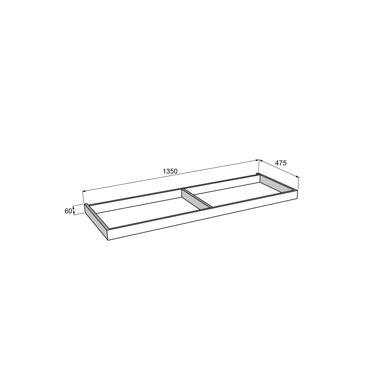 Ce socle en chêne vieilli de qualité supérieure pour un meuble sous-vasque Lucida mesure 135 cm de large, 47,5 cm de profondeur et 6 cm de hauteur.