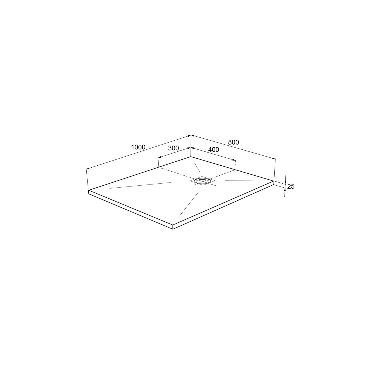 Ce receveur de douche mesure 80 cm de large et 100 cm de long.