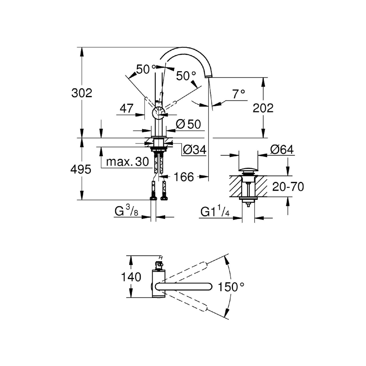 Épaisseur de tablette max. pour l'installation du robinet | 30 mm | |
