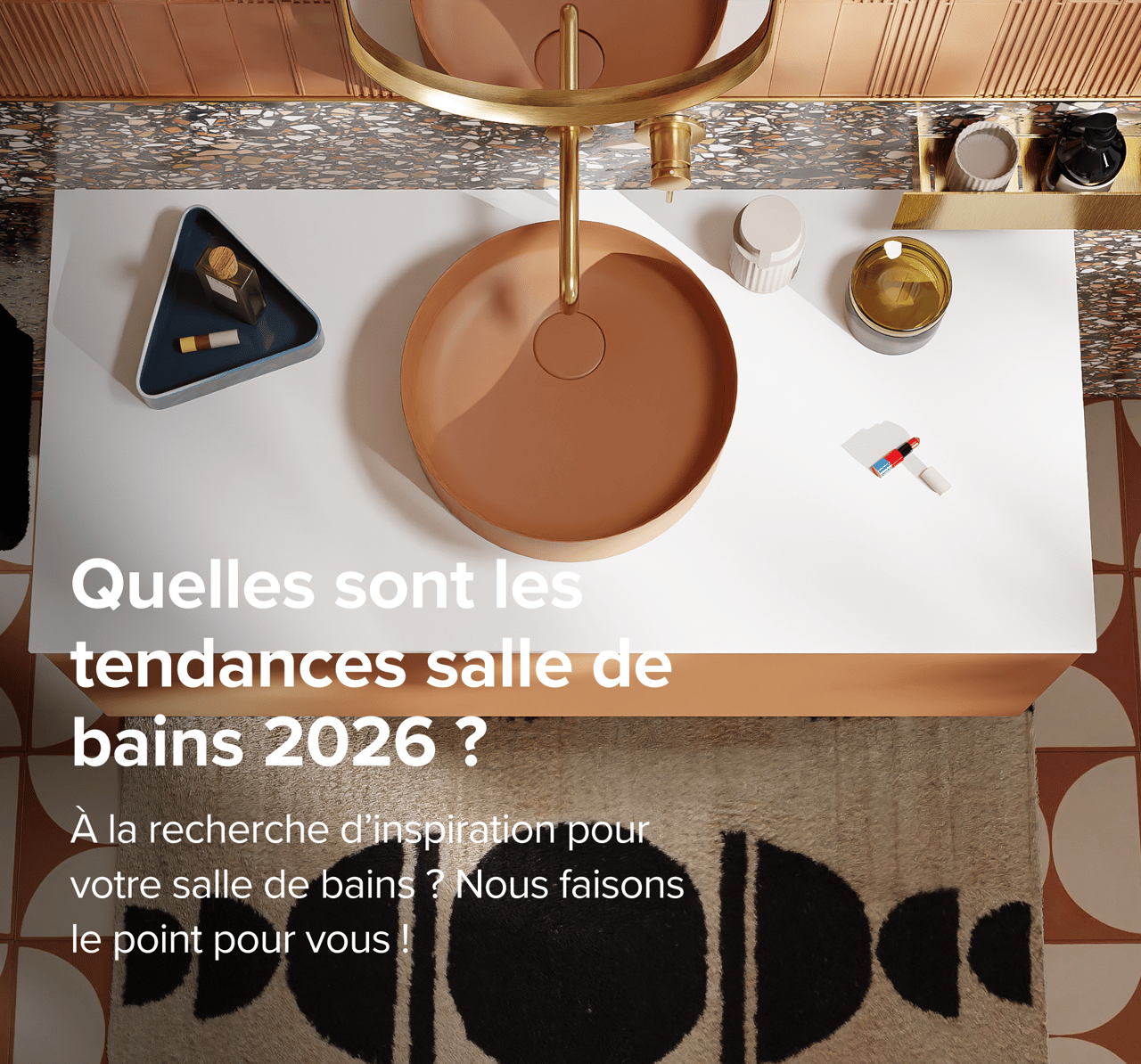 En 2026, même vos produits de salle de bains se parent de couleur. Associez la tablette Balmani Moon en Greige Terrazzo à la vasque Cotto Balmani Fiyi pour un effet coup d’œil garanti. Nos meubles de salle de bains vont bien au-delà des looks bois : dans des collections comme Linie, Storke et Balmani, vous trouvez aussi des couleurs fraîches comme le terracotta et le vert olive. Laissez-vous inspirer par cette tendance et mettez de la couleur dans votre salle de bains !