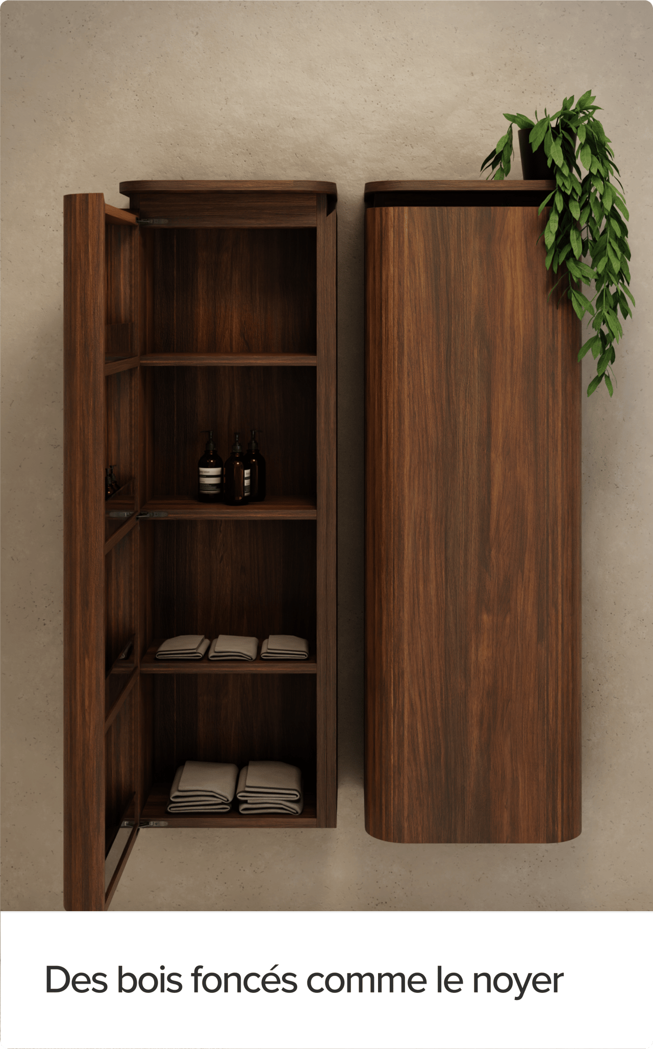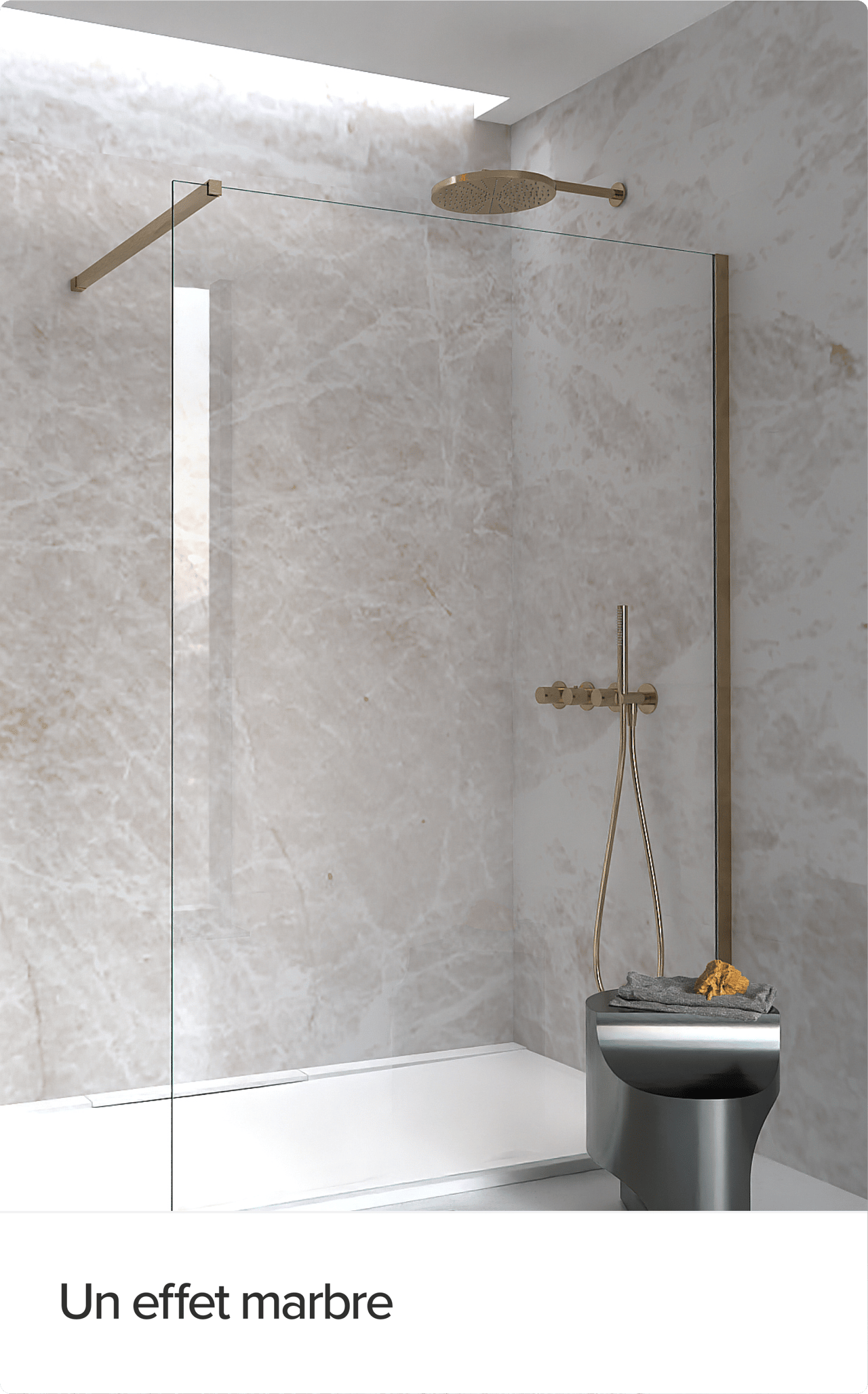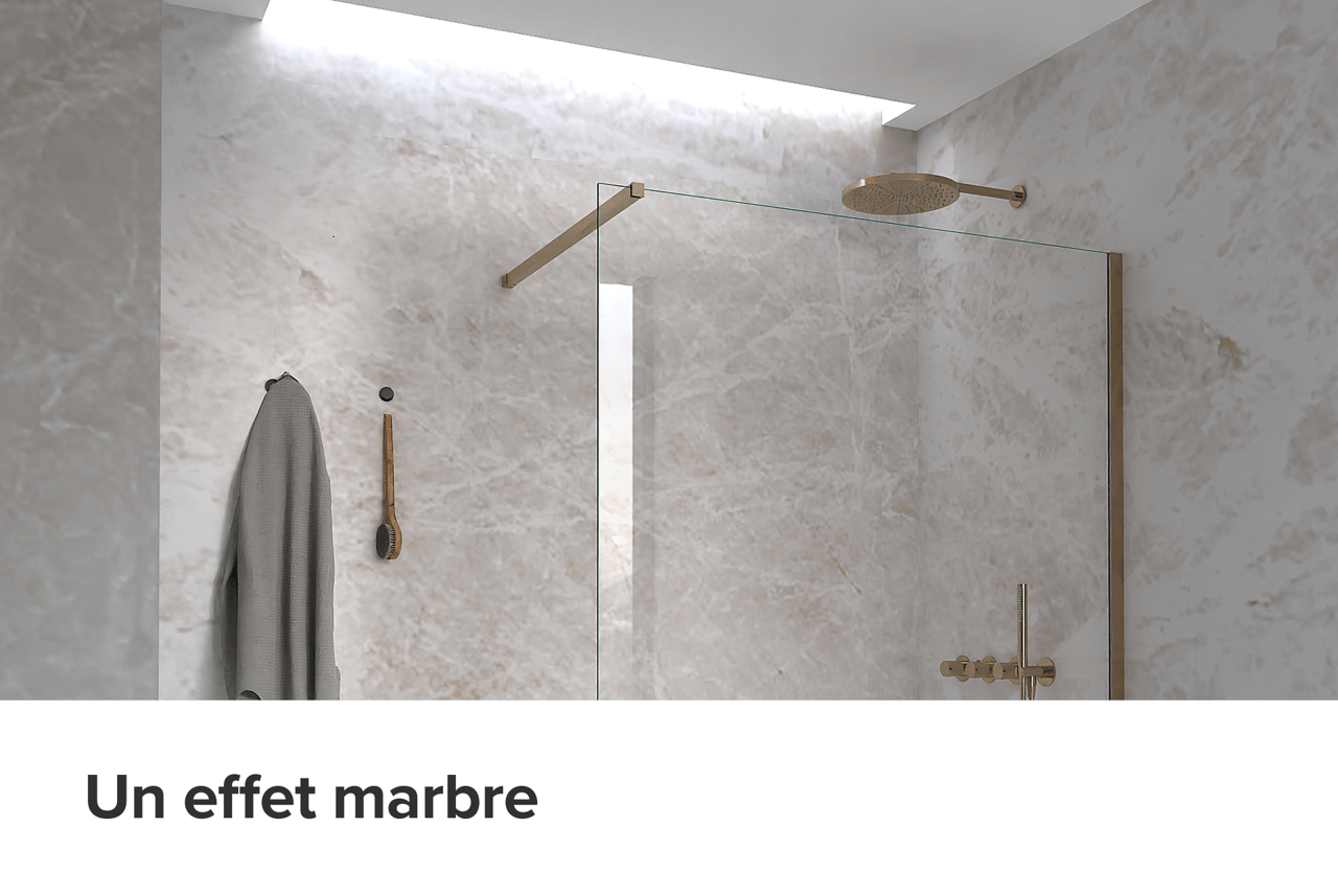 En plus de la couleur, le choix des matériaux pour votre meuble vasque, vos panneaux muraux de douche ou vos meubles est essentiel dans une salle de bains élégante. Optez pour des matériaux qui font vraiment la différence :