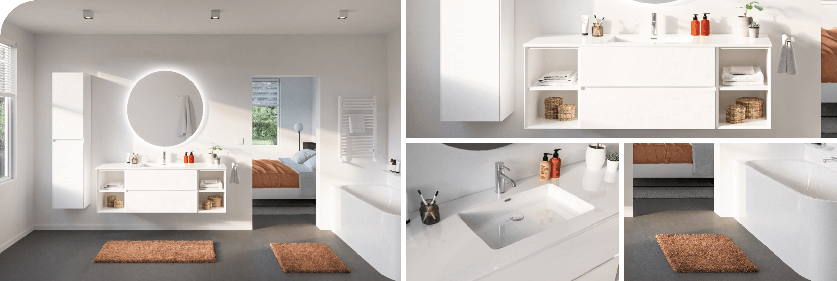 Cette salle de bain prouve que simplicité et harmonie vont de pair. Un espace inspirant où fonctionnalité et esthétique se rencontrent – l’endroit idéal pour commencer et terminer la journée en toute sérénité. Laissez-vous inspirer et créez votre propre havre de paix !