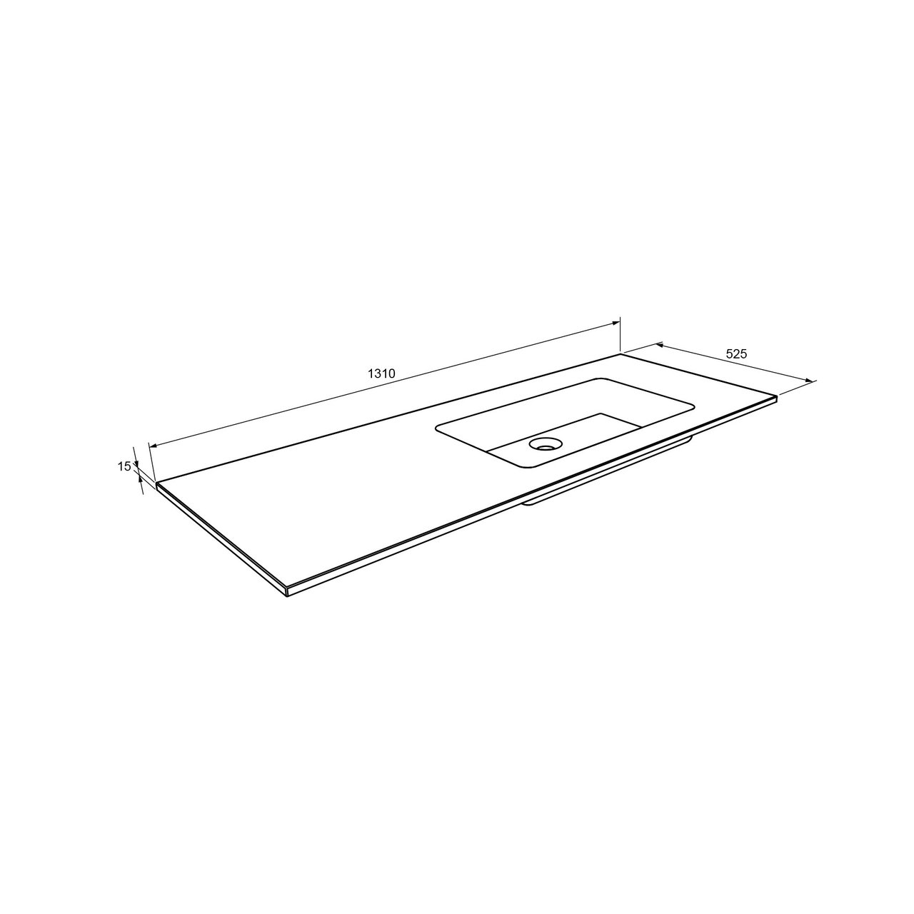 Dimensions | 130 x 52 cm meuble combiné asymétrique à droite 35 cm | |